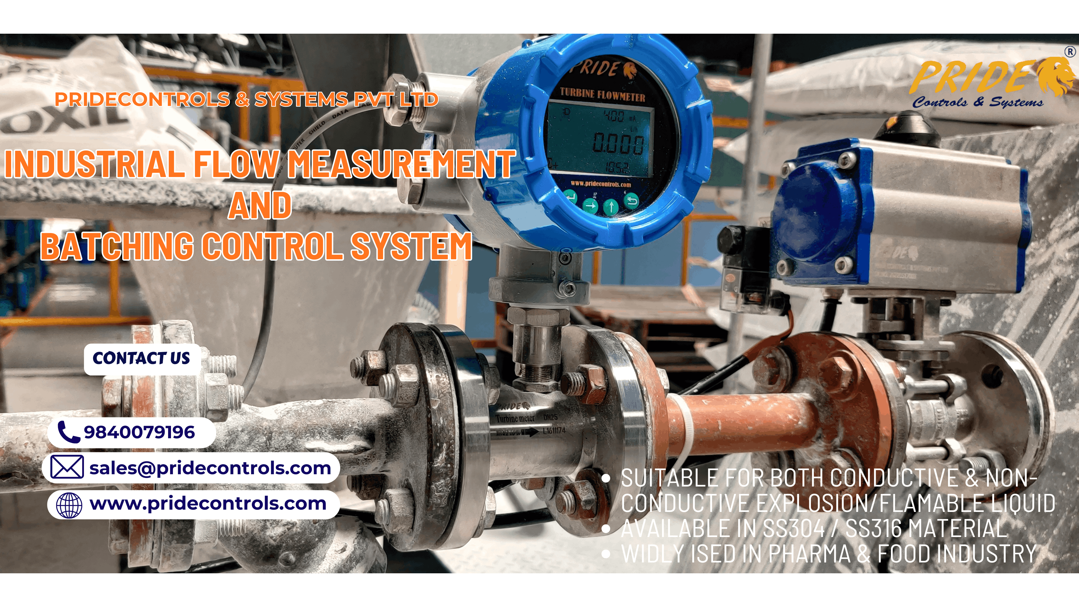 Pride Controls & Systems Pvt. Ltd Is An ISO 9001:2015 Certified Manufacturing Company Specializing In The Production, Supply, And Export Of High-Performance Industrial Grade Flow And Level Measuring Instruments. Our Company Boasts A Top-Quality HIGH PRESSURE Turbine Flowmeter, Which Features A Flanged Type And Is Capable Of Delivering Outstanding Performance Even In Non-Conductive Liquids Such As Kerosene, Petroleum, And Vegetable Oil. This Flowmeter Operates By Measuring The Media Through A Rotor That Runs Freely With A Tube, Causing The Rotation Speed To Be Proportional To The Velocity Of The Fluid Media. We Take Pride In Utilizing Only The Finest Quality Materials And Updated Technology In The Processing Of Our Turbine Flow Meters, Which Enables Us To Confidently Guarantee The Superior Performance Of Our Products.