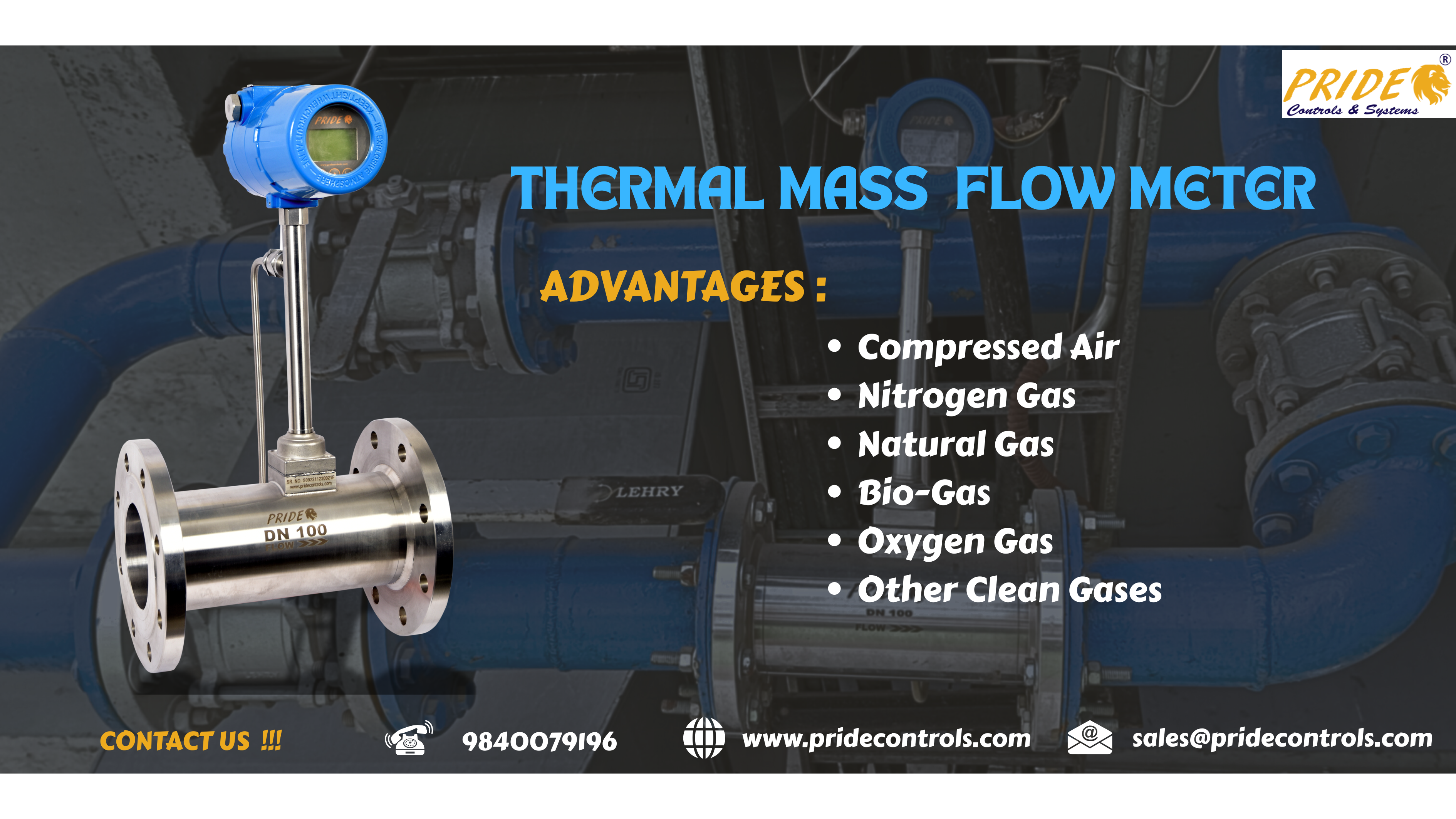 Pride Controls & Systems Pvt. Ltd. Chennai-Based Company, Has Been Certified with the ISO9001:2015 Manufacturing Standard. They Specialize In Supplying And Exporting High-Quality Industrial Flow And Level Measuring Instruments. One of Their Notable Offerings Is the Industrial THERMAL MASS FLOWMETER, which is an essential tool for evaluating the efficiency and performance of compressors. This flowmeter employs thermal mass flowmeters technology, which operates on the principle that heat is extracted from a heated element when a fluid passes Through It. The Flowmeter is Equipped with Two Sensors: One That Measures The Fluid's Current Temperature As A reference, and another that is heated to a constant temperature differential relative to the first sensor at zero flow. Once fluid begins to Flow, the Heated Sensor Begins to Cool Due To the Fluid's Flow. The Cooling Effect Is Proportional To The Velocity Of The Fluid Flow, Hence The Greater The Cooling Effect, The Higher The Velocity Of The Fluid Flow.
